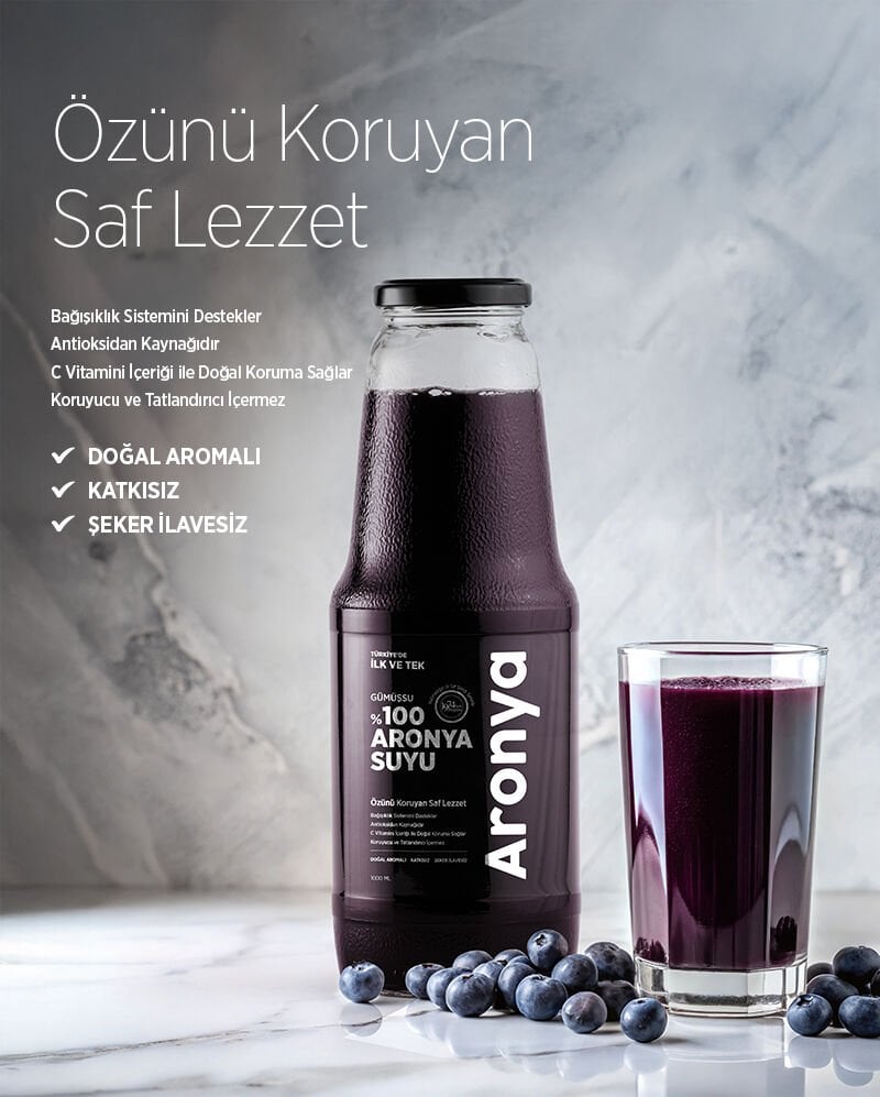 Derin mor rengi ve dengeli tat profiliyle Gümüşsu Aronya Suyu, sadece ferahlatıcı bir içecek değil, aynı zamanda doğanın enerjisini taşıyan sağlıklı bir yaşam kaynağıdır. Kahvaltılarda, gün ortasında ya da spor sonrası tüketildiğinde, tazelik ve canlılık hissi verir.