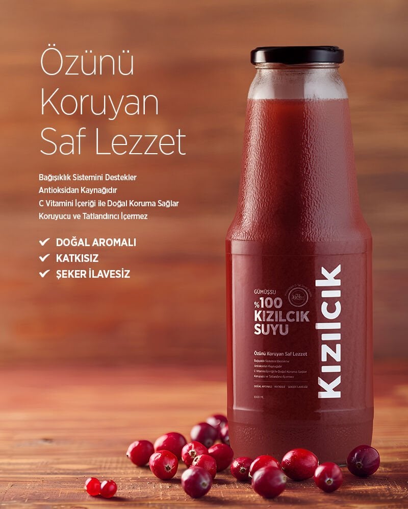 Gümüşsu %100 Kızılcık Suyu, yüksek antioksidan içeriği ve C vitamini zenginliğiyle doğadan gelen bir enerji kaynağıdır. Kahvaltılarda, öğün aralarında ya da sıcak yaz günlerinde soğuk servis edildiğinde ferahlatıcı bir içim sunar. Dengeli asiditesi sayesinde hem tek başına keyifle içilebilir hem de farklı karışımlarda doğal bir tamamlayıcı olarak kullanılabilir.