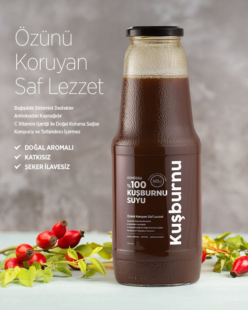 Her 1 litrelik şişe, Gümüşsu’nun doğaya ve kaliteye olan bağlılığını yansıtır. Meyveler olgunlaştığı anda toplanır, kısa sürede işlenir ve besin değerleri kaybolmadan şişelenir. Sonuç; doğadan gelen canlı rengi, özgün aroması ve taze lezzetiyle saf bir kuşburnu deneyimi.