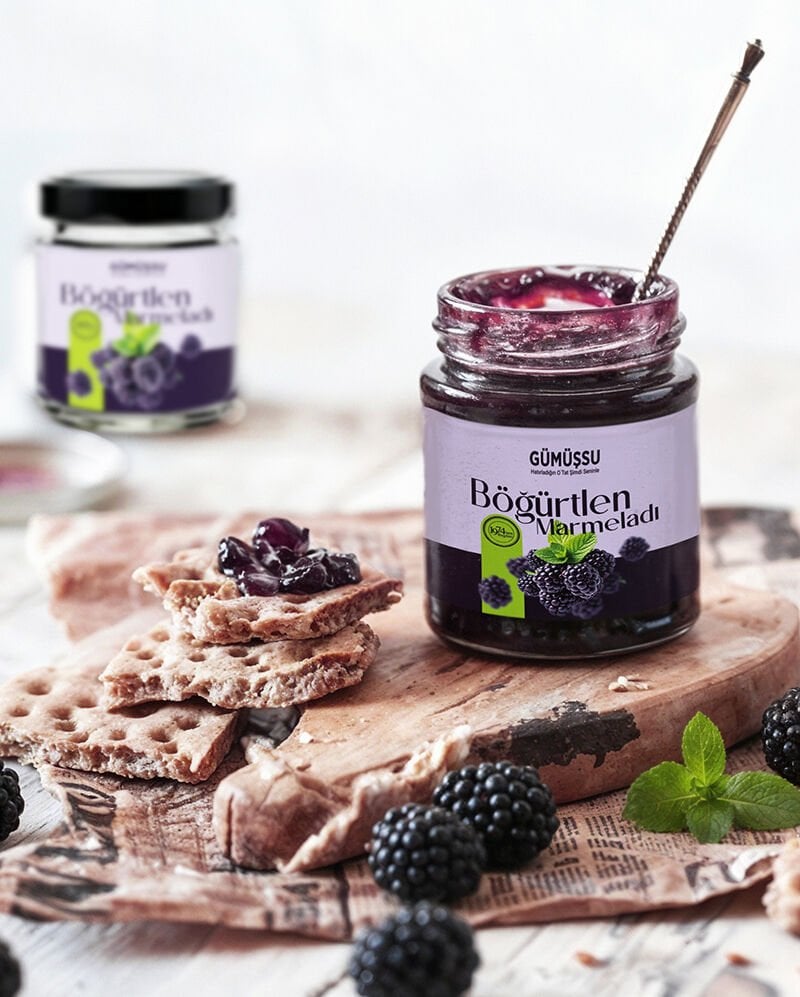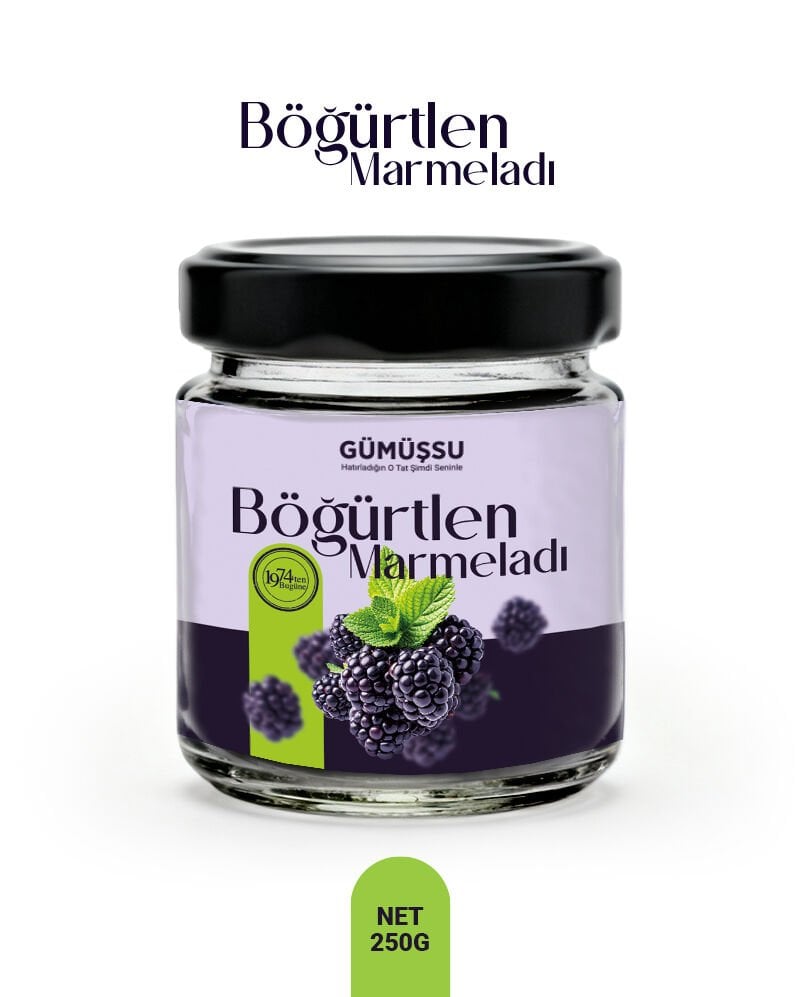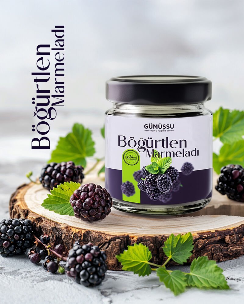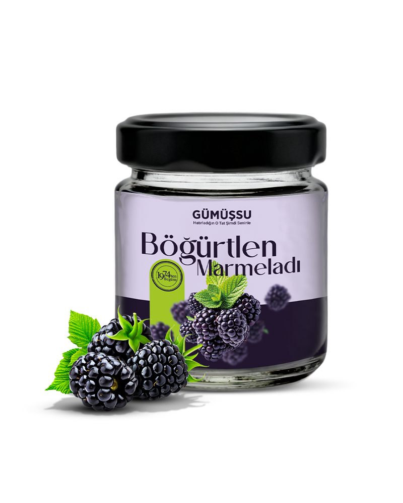 Doğanın sunduğu en yoğun renklerden ve aromalardan biri olan böğürtlen, Gümüşsu’nun özenli üretim süreciyle benzersiz bir marmelada dönüşüyor. Mevsiminde, tam olgunluk döneminde toplanan böğürtlenler; doğallığını koruyan geleneksel yöntemlerle işlenir. Her kavanoz, hiçbir katkı maddesi kullanılmadan, meyvenin kendi rengini, kokusunu ve lezzet dengesini taşıyan saf bir lezzet deneyimi sunar.