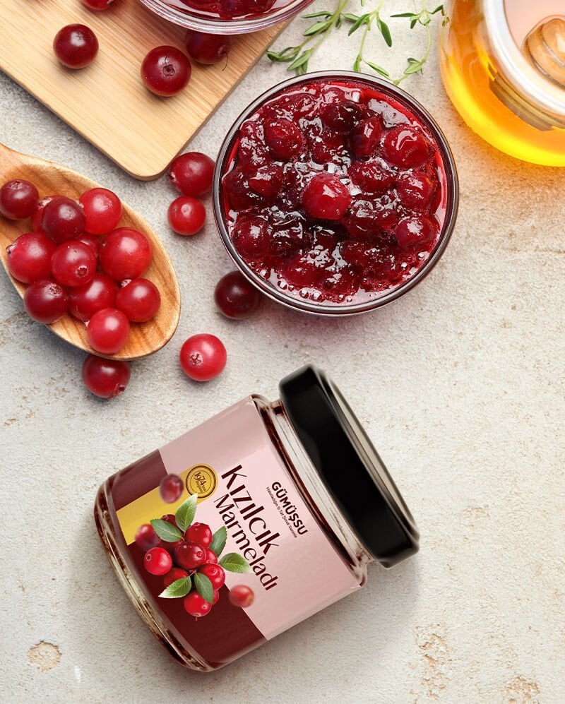 Kendine özgü ekşi-tatlı aromasıyla tanınan kızılcık, Gümüşsu’nun ustalığıyla doğanın en rafine lezzetlerinden birine dönüşüyor. Mevsiminde, özenle seçilerek toplanan kızılcıklar; hiçbir katkı maddesi kullanılmadan, geleneksel yöntemlerle hazırlanır. Her kavanozda meyvenin doğal rengi, yoğun kıvamı ve ferahlatıcı aroması korunur.